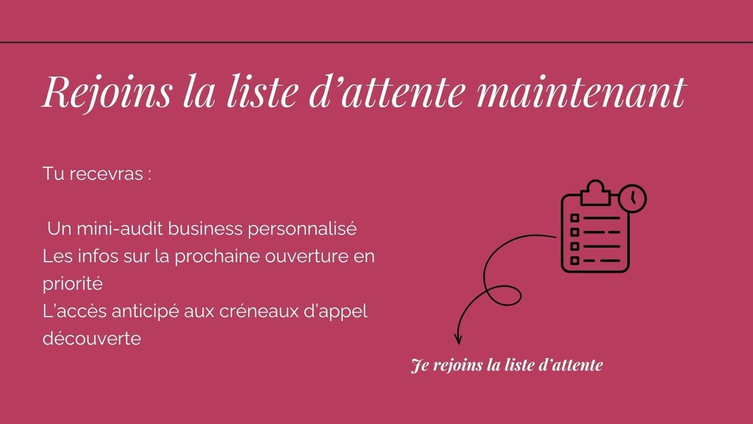 👉 Rejoindre la liste d’attente pour être prévenue en priorité, recevoir un mini-audit offert, et accéder en avant-première aux créneaux de coaching.
